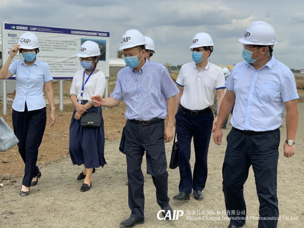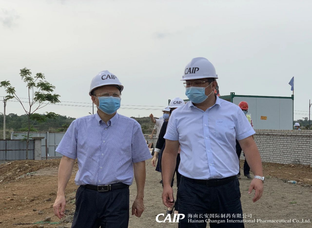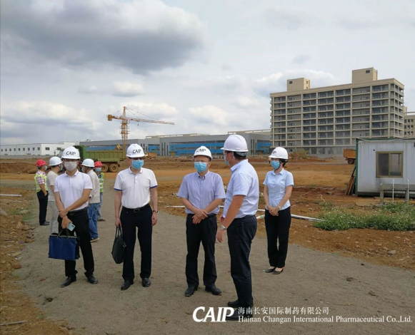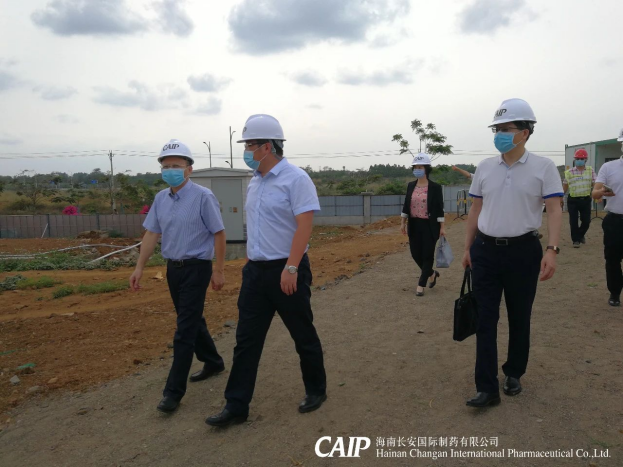 2020年3月20日,海南省工信廳副廳長林敏、產(chǎn)業(yè)發(fā)展處處長黃家林帶隊(duì)蒞臨長安制藥美安科技新城新廠建設(shè)項(xiàng)目現(xiàn)場指導(dǎo)工作,調(diào)研企業(yè)復(fù)工復(fù)產(chǎn)及新廠項(xiàng)目復(fù)工情況,長安制藥總經(jīng)理汪立冬等進(jìn)行陪同。