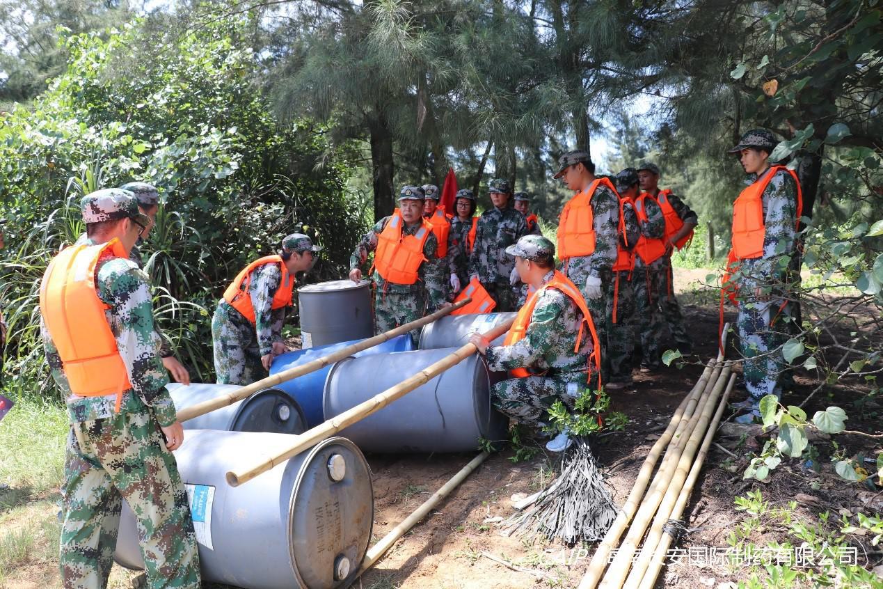 各隊伍利用僅有的道具,頂著烈日,分工協作搭建竹筏,目的是順利將午餐的食材和隊員們運到對面的無人島。在這個過程當中,大家克服了高溫下人體的承受極限,建立良好的合作意識,合理運用資源,掌握溝通技巧,充分體現出了團隊的合作及協調能力。