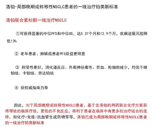 洛鉑作為一線化療方案藥物連續4年被"CSCO原發性肺癌診療指南"推薦!